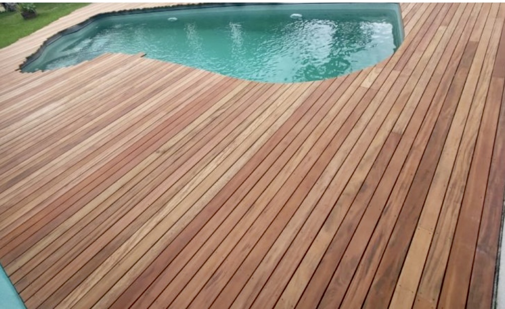Conception et réalisation d’un deck en bois pour une plage de piscine.
