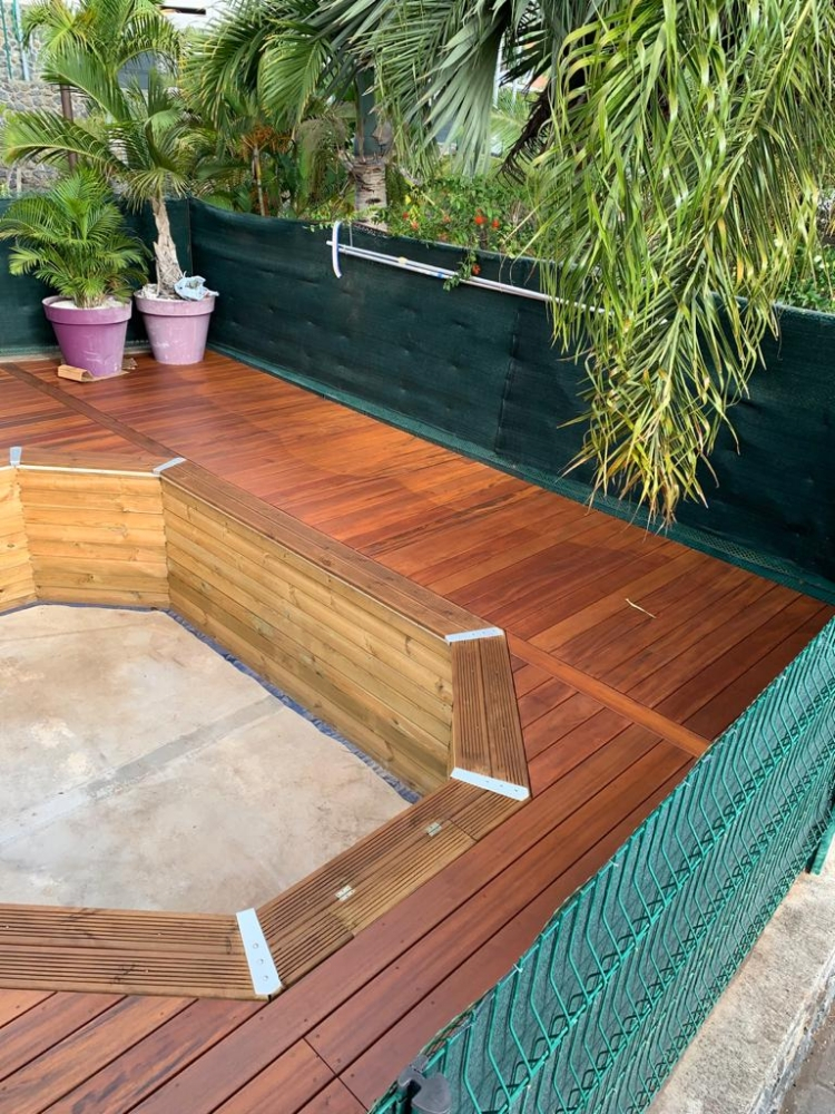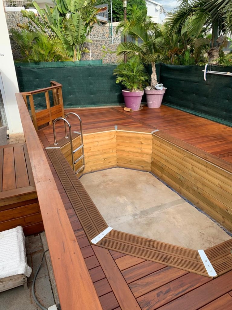 Résultat : une piscine bois unique à La Réunion, alliant design et praticité pour un confort optimal au quotidien.