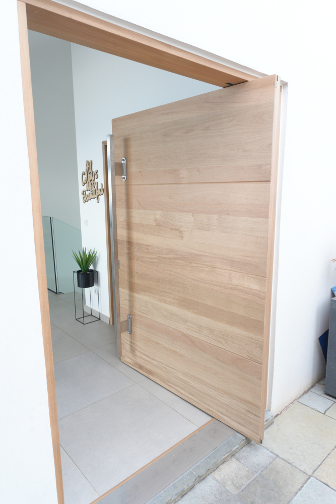 Récemment, nos équipes ont réalisé une porte d’entrée en chêne pour une maison située à Saint-Denis de La Réunion. Une pièce d’exception, aux grandes dimensions, intégrant un bâton de maréchal et un design sobre mais affirmé. Cette porte illustre parfaitement notre philosophie : mettre en valeur la noblesse du bois tout en garantissant la robustesse et la longévité nécessaires au climat réunionnais.