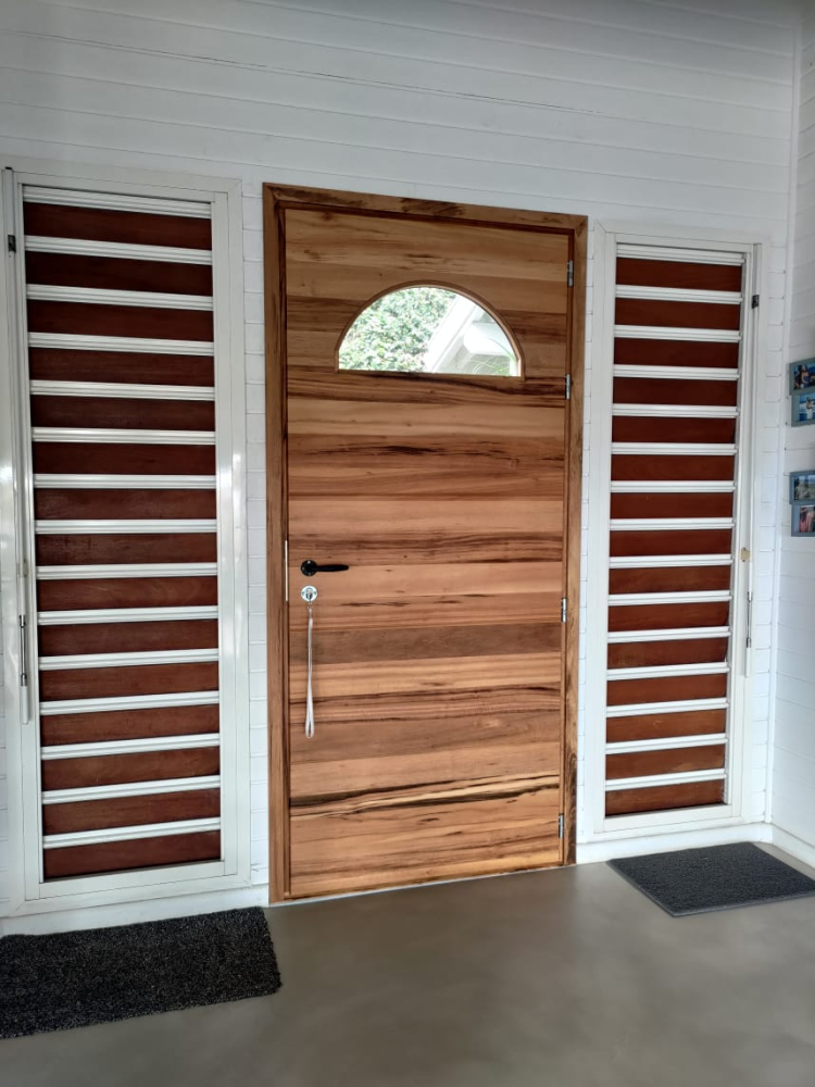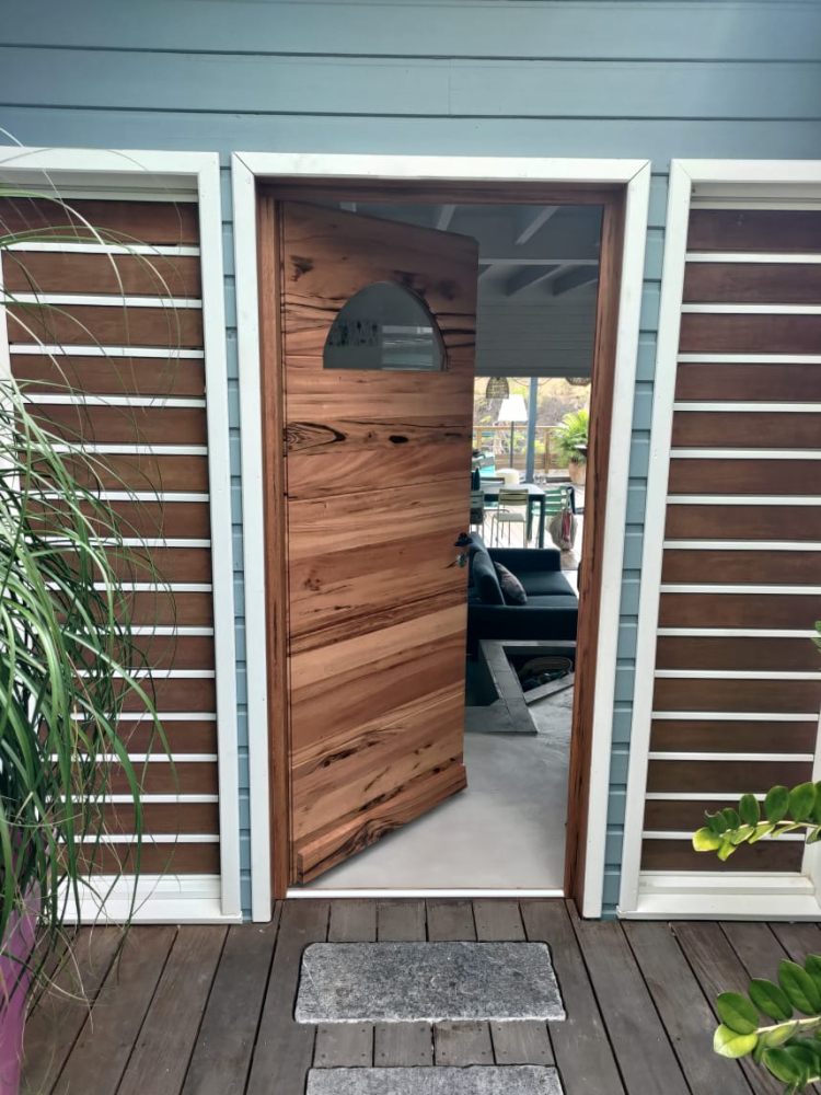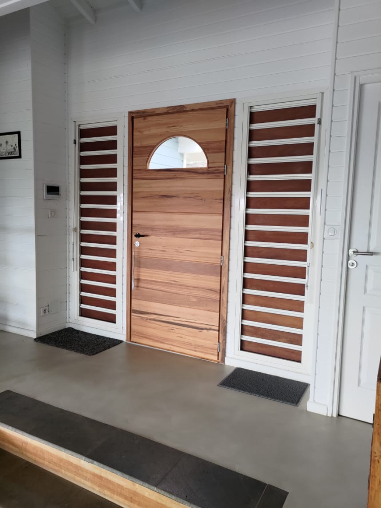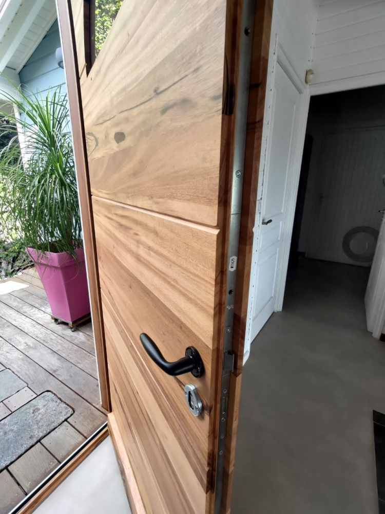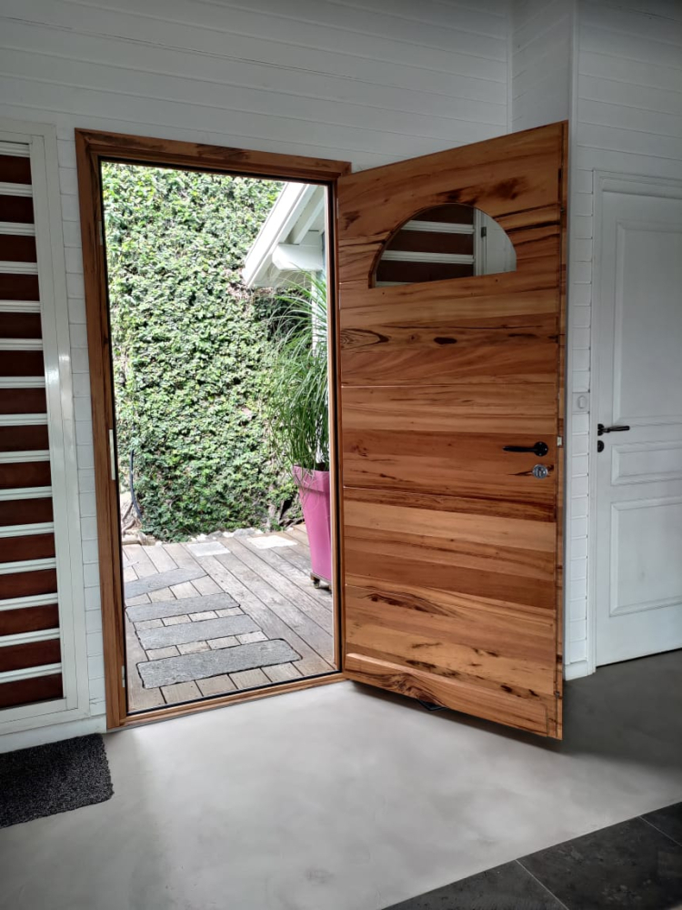 Chez BoisCOM, chaque création est unique et pensée dans les moindres détails pour allier esthétique, durabilité et précision technique. Notre équipe de menuisiers à La Réunion vient de livrer une porte d’entrée sur mesure en bois exotique Muiracatiara (Tiger Woods), une essence reconnue pour sa solidité, sa résistance et son aspect visuel exceptionnel.