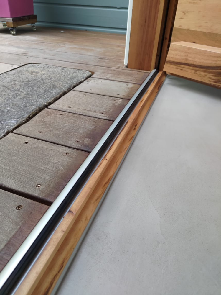 Adaptation d’un seuil aluminium-bois afin d’assurer une parfaite étanchéité malgré une différence de niveau entre l’extérieur et l’intérieur,