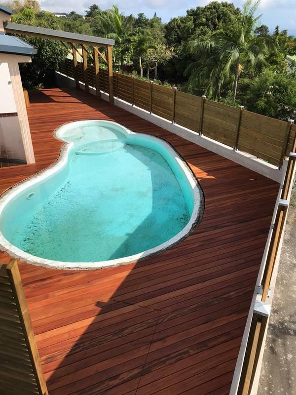 Aménagement d'une terrasse avec piscine à Étang-Salé : BOISCOM vous présente ses dernières photos.
